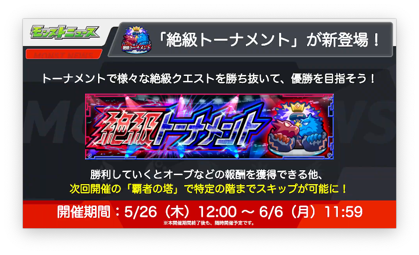 【速報】※神熱注意※『絶級トーナメント』緊急発表!!オーブ最大〇〇個+圧巻の”超豪華報酬”ぶっ込み投入よっしゃぁああああああああ!!!!!【モンスト】