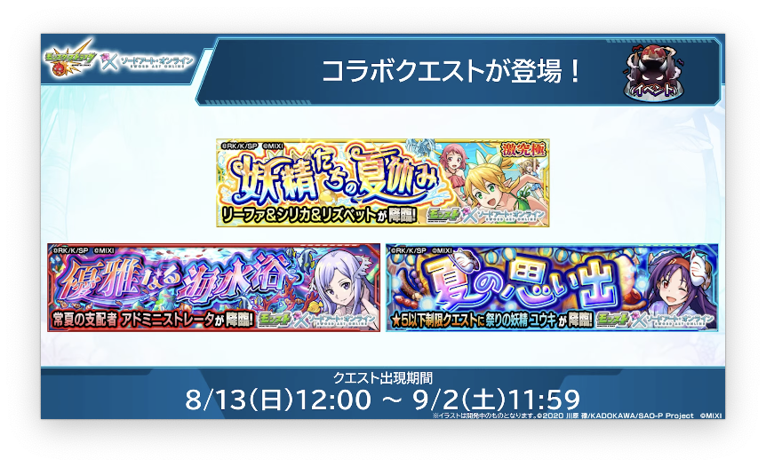 【速報】激かわ限定キャラ『リーファ&シリカ&リズベット(2種類)』『アドミニストレータ』『ユウキ』降臨決定よっしゃあああああああ!!!!【モンスト】 uverchan03212023年8月10日0 続きを読む