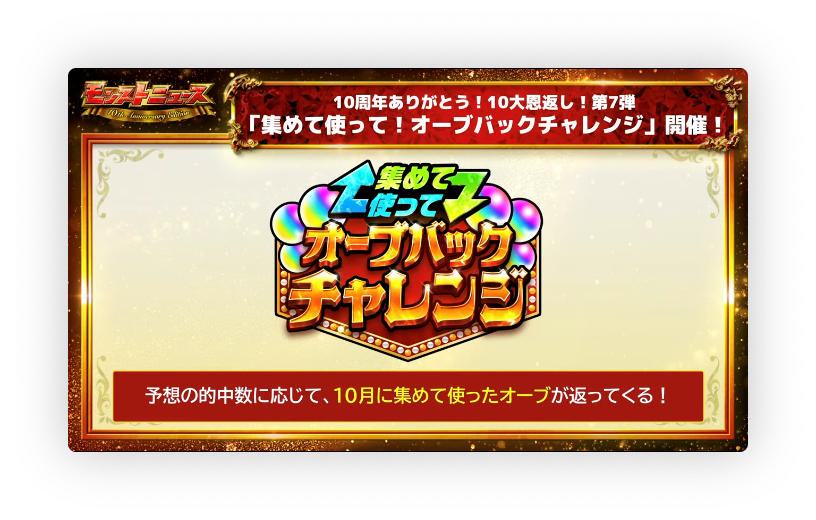 【速報】※10大恩返し第7弾※ 最大『オーブ500個』ゲット可能!!あまりにも激アツすぎる『オーブバックチャレンジ』開催決定きたあああああああ!!!!【モンスト】