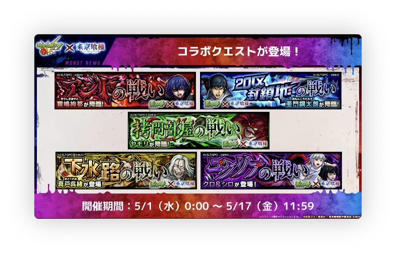 【速報】『霧嶋絢都』『亜門鋼太朗』『ヤモリ』一挙発表!!5種類のコラボ限定クエスト出現決定よっしゃあああああ!!!!【モンスト】