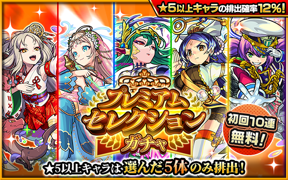 【速報】初回10連無料あざーす!w 各属性選んだキャラのみが排出される『プレミアムセレクションガチャ』開催決定!!【モンスト】