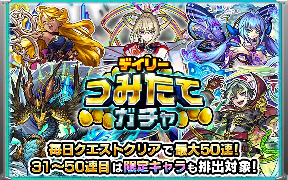【速報】無料で50連!限定キャラも対象!奇跡の神イベント『デイリーつみたてガチャ』詳細発表きたあああああああ!!【モンスト】