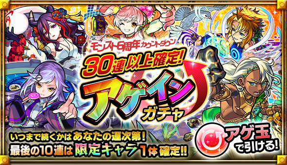 【モンスト】※速報※限定キャラ1体確定!!衝撃の「30連以上確定!アゲインガチャ」開催情報公開きたああああ!!!