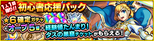 【モンスト】※公式※新たに星6確定ガチャも引けるぞ!!「初心者応援パック」のリニューアル決定きたああああ!!!