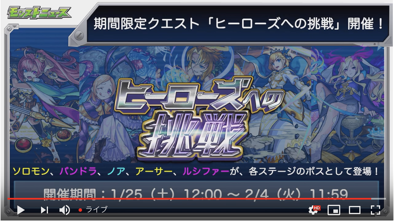 【モンスト】※速報※超究極クエストで「ソロモン」「パンドラ」「ノア」「アーサー」「ルシファー」など降臨!!期間限定クエ「ヒーローズへの挑戦」開催決定きたあああ!! monstsoku2020年1月23日0 続きを読む